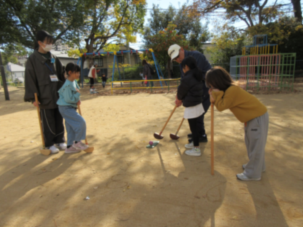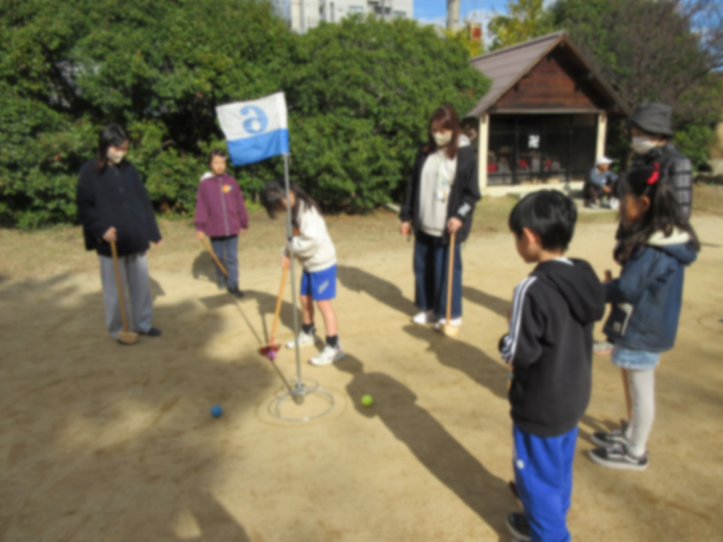 クラブの持ち方からボールの打ち方まで教えて頂いて、ホールインワンを目指して頑張る子どもたちの様子が見られました!グラウンドゴルフを楽しんでもらえて良かったです♪