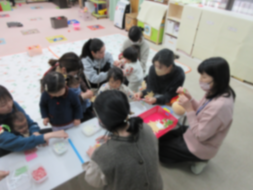 2月20日(金)のわくわくタイムでは、『どうぶつサーカスはじまるよ』の絵本を見ました。色々な動物がたくさん出てきましたね🎵『ちょっとだけたいそう』をしたり、シアター『なぞなぞひなまつり』😊ふれあい遊びでは、『りんごころころ』『ぺんぎんちゃんんのやまのぼり』みんなニコニコ笑顔でママと一緒にとっても嬉しそうでした❤クマちゃんセーターも可愛く出来ました🎵