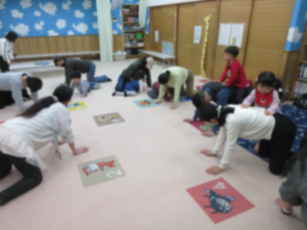 2月26日(木)のすこやかクラブでは、絵本『だあれ?だあれ?のひなまつり』を見ました。またシアター『なぞなぞひなまつり』も見た後は、みんなでおひなさま作りをしました🎵可愛いお顔になって飾るのが楽しみですね😊その後は、保護者の方のトンネルをくぐったり、ふれあい遊びをしました。